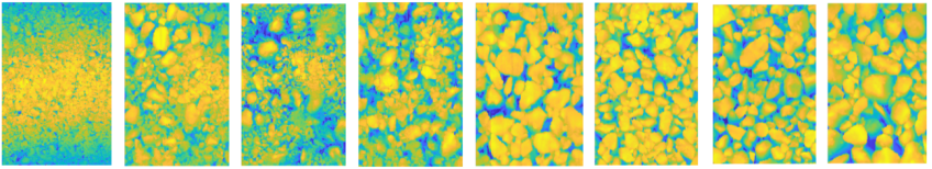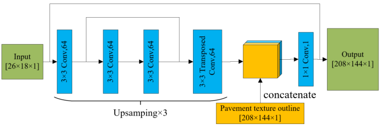 该论文通过激光纹理仪和智能手机构建了宏观纹理RGB-D数据集,建立了基于ResNet-101残差神经网络的宏观纹理三维重构模型(图2),实现了通过单张沥青路面表面纹理的RGB图片重构其三维形貌。该模型重构的表面纹理与激光纹理仪扫描得到的纹理对比(图3),可以准确反映路面真实宏观纹理的三维特征,可用于表面纹理评价指标的计算。该模型在一定程度上可以代替激光纹理仪对路面表面纹理点云数据进行获取,从而实现降低试验成本,提高试验效率,对提升路面抗滑评估效率、保障行驶安全具有重要的科学意义。