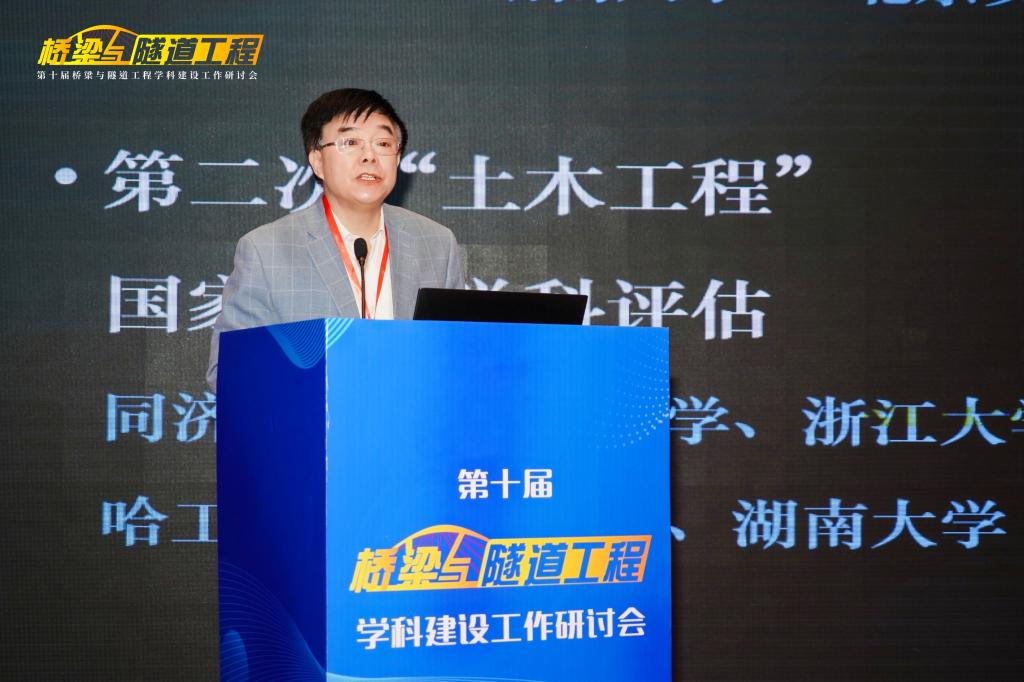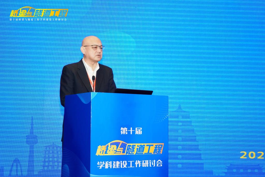 米兰中国校长沙爱民教授在开幕式致辞,他对莅临研讨会以及一直关心支持米兰中国建设发展的各位专家、来宾、同仁表示热烈欢迎和感谢,并向与会代表介绍了米兰中国“桥梁与隧道工程”学科的发展历史、实力与特色。他指出,“桥梁与隧道工程”学科建设需要始终坚持中国特色、世界一流,在党的坚强领导下,坚持服务国家需求,瞄准科技前沿和关键领域,优化学科建设发展布局,把发展科技第一生产力、培养人才第一资源、增强创新第一动力更好结合起来,更好为改革开放和社会主义现代化建设服务。他希望各位与会专家、学者能够以本次研讨会的召开为契机,集思广益、群策群力、凝聚共识,共同提高“桥梁与隧道工程”学科的教学、研究与实践水平。