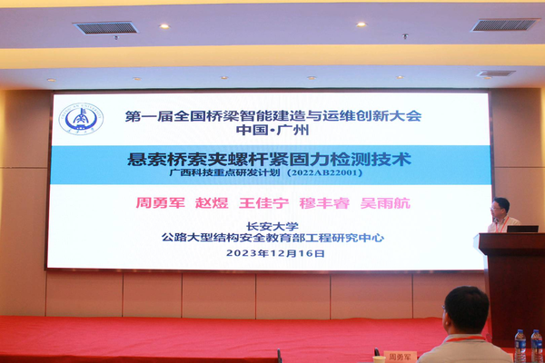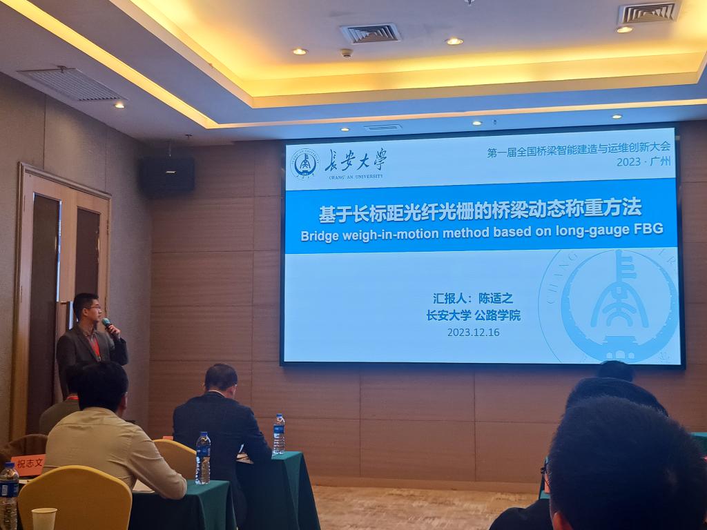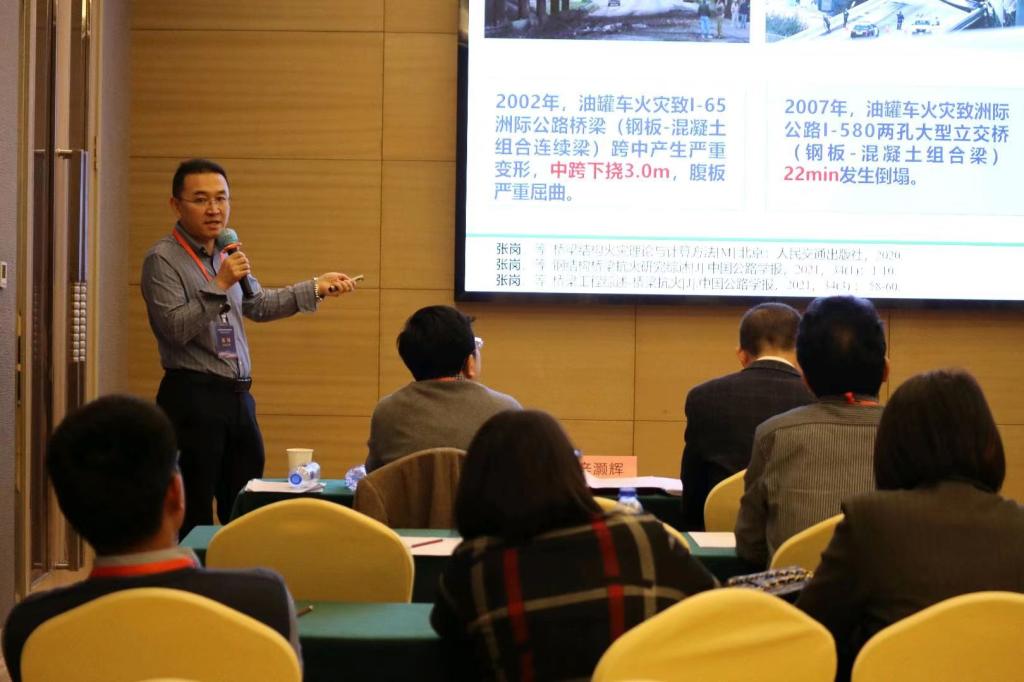 此外,韩万水教授作题为“桥梁智能运维三维仿真软件BDANS研发和工程实践”报告。周勇军教授作题为“悬索桥索夹螺杆紧固力检测技术”报告。张岗教授作题为“钢桥抗火设计”报告。牛艳伟副教授作题为“钢纤维轻质混凝土桥面温度梯度分析方法”报告。陈适之副教授作题为“基于长标距光纤光栅的桥梁动态称重方法研究”报告。我院老师的学术报告得到了与会专家的高度评价和认可。参会代表就桥梁智能建造与运维的热点问题和未来发展趋势与专家学者进行了广泛的讨论和交流。