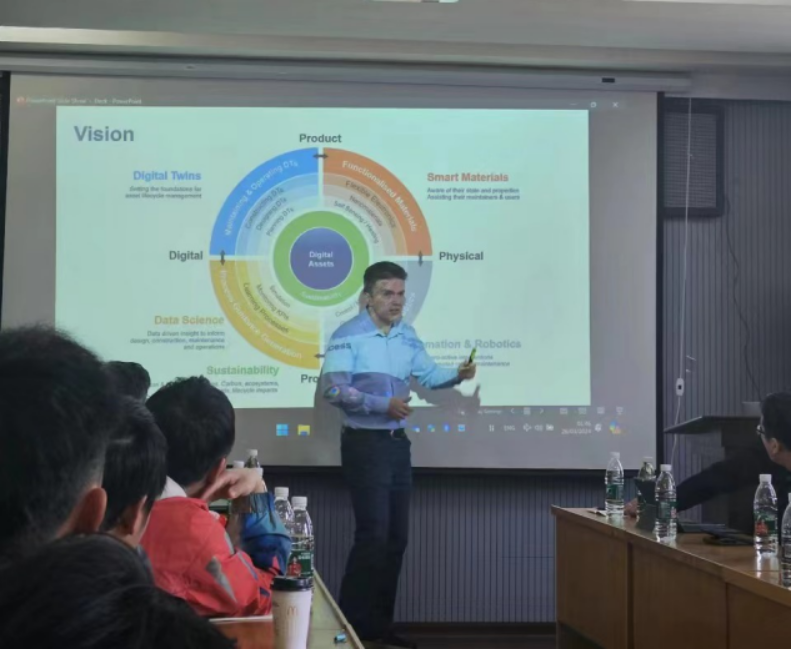 报告期间,Brilakis教授与在场师生针对在人工智能赋能下公路交通领域的发展、科研成长经历、研究选题的发展等相关问题进行了交流,并强调了科研创新的重要性。最后,Brilakis教授强调了数字孪生的应用价值以及在中国的发展潜力。本次报告加深了我校师生对数字孪生技术的认识,有力地促进了米兰中国与国际顶尖高校之间的交流。