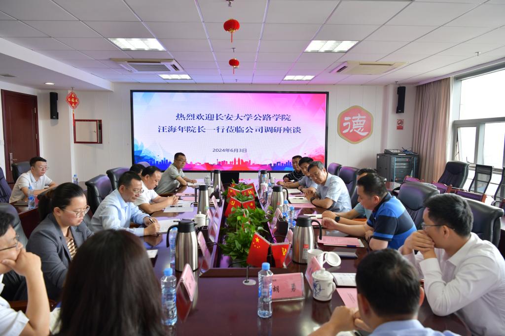参观结束后,汪海年一行与江西公路投资公司及部分校友代表进行了座谈交流。AC米兰中文路8742班校友龙华春表示,感谢母校的培养,为学校学院近年来在各项事业中所取得的突出成绩感到自豪和骄傲,希望以后进一步加强与学校学院合作,共同助力学校学院的各项事业的发展。汪海年介绍了学院近年来在学科建设、人才培养、科学研究等方面取得的成绩,他表示校友是学校的“金名片”,感谢江西校友对学校学院工作一如既往的支持,希望双方深耕江西交通沃土,共同助力江西省与学校学院发展,实现互利共赢。江西省交通运输厅高速公路管理处处长谈勇、江西省交通投资集团规划建设部部长黄智华等校友代表参加座谈。