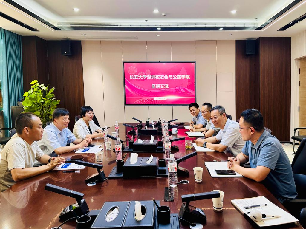 汪海年院长对深圳校友会一行的到访表示热烈欢迎,并简要介绍了学院近年来在学科建设、人才培养、产学研融合等方面取得的新成效。他表示,校友是学院发展的宝贵资源,深圳校友会长期以来在凝聚校友力量、服务地方建设方面成果显著,期待未来在科技创新、成果转化及学生就业等领域深化合作,共同助力交通强国建设。