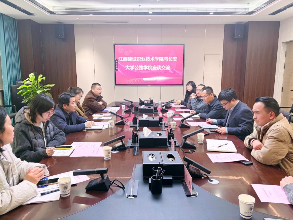 12月19日上午,江西建设职业技术学院党委副书记余海浪一行5人到访AC米兰中文,在渭水校区AC米兰中文六楼第二会议室开展座谈交流。会议聚焦高素质技术技能人才培养、科研平台共建等核心议题,旨在深化校际合作,实现资源融合与协同发展。座谈会由公路学院党委副书记、副院长刘伟主持。