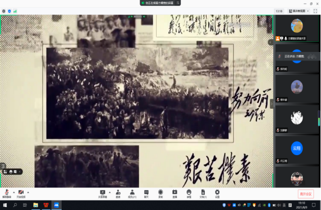 本科生第三党支部于8月6日以腾讯会议形式开展了“五个一百”党史学习教育专题微党课。本次党课由第三党支部副书记张昕同志担任主讲人,第三党支部全体党员、预备党员、发展对象以及入党积极分子参加党课。张昕同志讲述了百名英模人物和百部红色经典图书。介绍了方志敏、蒋诚等英模人物以及红色经典图书——《人民的名义》。