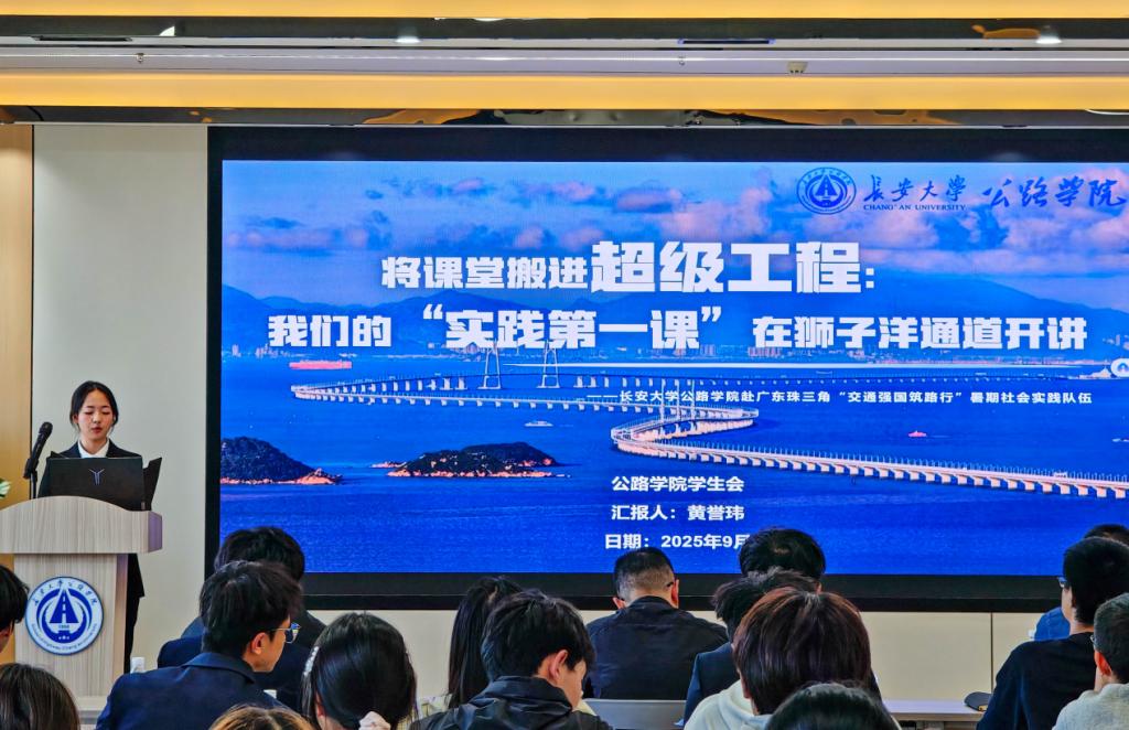 米兰中国赴广东珠三角“交通强国筑路行”暑期社会实践队黄誉玮同学以《将课堂搬进超级工程:我们的“实践第一课”在狮子洋通道开讲》为题进行分享。今年暑期,该支队伍走进拥有世界五项第一的狮子洋通道等国家重大工程,深刻感悟到当年青年应勇于在艰难险阻中挑起重担,在祖国最需要的地方挥洒青春。