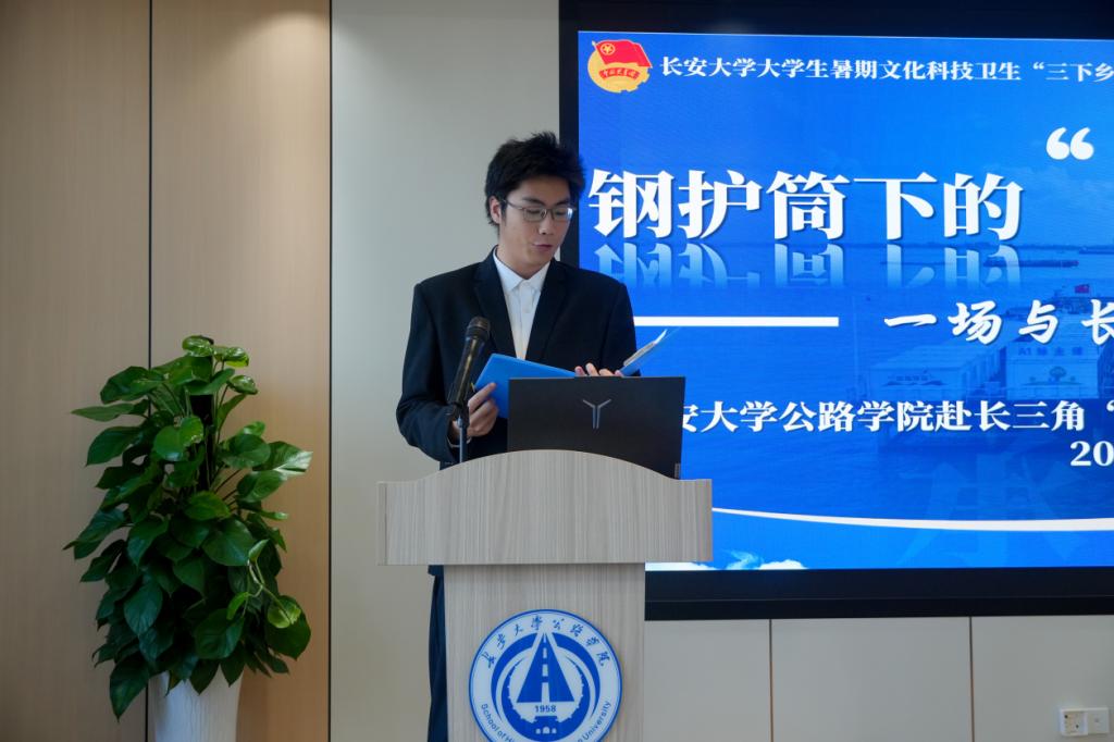米兰中国赴甘肃兰州“虹桥传薪·金城问道”暑期社会实践队肖梓文同学分享了他们通过无人机测量、方案比选等方式深入了解工程建设的经历。他认为,青年一代要走出课堂,走向祖国大地,将科技成果应用于实践,在一次次探索中不断磨砺自我,担当起建设交通强国的使命。