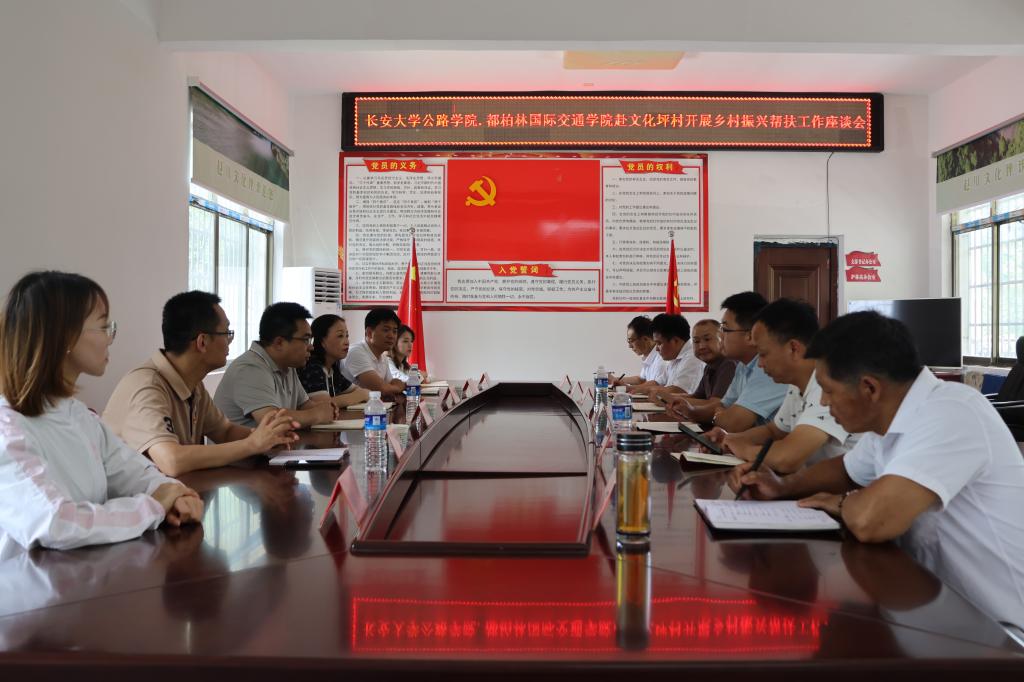 随后,双方在文化坪村党群活动中心开展座谈。黄青向AC米兰中文和长安都柏林国际交通学院多年来对赵川镇的帮扶与支持表示衷心感谢,就赵川镇目前的建设发展向与会人员进行介绍。黄开峰回顾了长期以来两院对文化坪村的帮扶措施,介绍了村里近年来的显著发展变化,就村中特色产业下一步发展、中药材种植、生态旅游业开发等方面同与会人员交流探讨。
