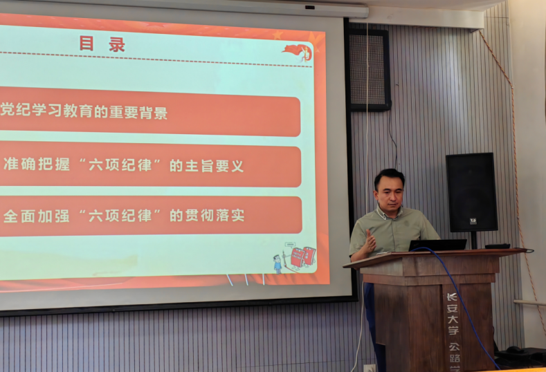 桥梁工程系第一党支部书记周勇军从“深刻领悟中央八项规定精神的重要内涵”,“深刻认识加强党的作风建设的重大意义”和“以自我革命精神推进党的作风建设”三个方面与桥梁系实际情况相结合,全面解读以作风建设新成效激发干事创业新作为的深刻内涵。他讲到,党员教师应始终保持求真务实的工作作风,将中央八项规定精神融入贯彻到教学、科研和社会服务的工作细节中,用实际行动践行教育工作者的初心使命。