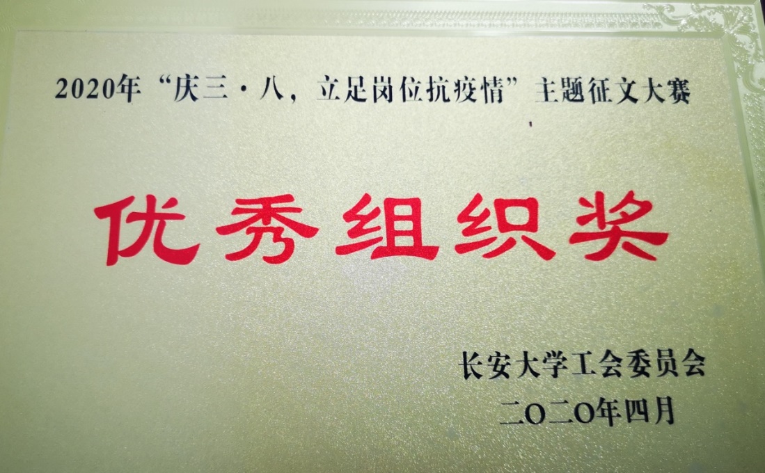 学院工会主席陈红老师接到通知后高度重视,第一时间在学院女教工微信群里转发通知,鼓励我院女教职工在繁忙的在线教学、管理工作之余积极参与此项活动。学院女工委员路西利老师充分挖掘我院女教职工在抗疫期间的典型人物和先进事例,有针对性的动员和联系相关老师,并和他们一起总结、凝练和完善。老师们所写文章主题鲜明、图文并茂,生动形象地讲述了奋战在抗击疫情、停课不停教中的先进典型和感人事迹。最终经专家评审荣获一等奖一篇、二等奖一篇、优秀奖两篇,我院被校工会授予“优秀组织奖”